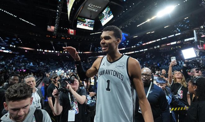 文班亚马在赛后采访中,心情显然非常不错,他既谦逊地表示,雷霆是联盟断档领先的第一,马刺要学习雷霆的赢球方式,又在面对记者打趣地问到是否打算冲击最佳第六人时,反问道:“最佳第六人获得者,能获得MVP奖杯吗?”随后,文班亚马话锋一转,表态:“对我个人而言,这是我生涯第一次经历赢球比输球多的赛季,我很开心,球队走在一条正确的道路上。这只是我复出的第一场比赛,我的状态当然会越来越好。”
