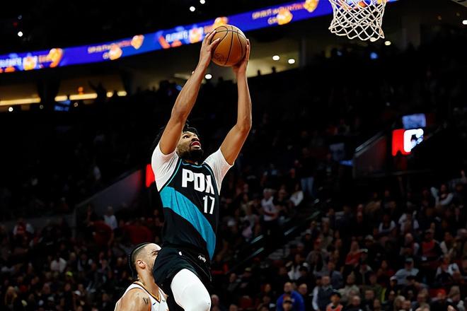 本场比赛中,开拓者的替补后场新星谢顿-夏普(Shaedon Sharpe)完成了复出,然而他在复出后首战中的表现就是很不理想的水平。夏普全场出场21分30秒,投篮8中4,三分线外3中0,罚球4中3,得到了11分5篮板2助攻1盖帽的数据,还有3次失误和2次犯规,正负值则是低到了全场最低的-13。夏普在外线投篮方面的手感依然没有回暖的迹象,他的进攻选择依然不太合理,他也依然是出现了大量的失误。不仅如此,夏普在防守端的表现简直是惨不忍睹,可以说是完全不具备基本的防守能力。总体来看,夏普在攻防两端的表现都令人非常失望,-13的正负值也能够说明他对于球队的负面影响有多大以及他在场上时球队的整体局面有多糟糕。