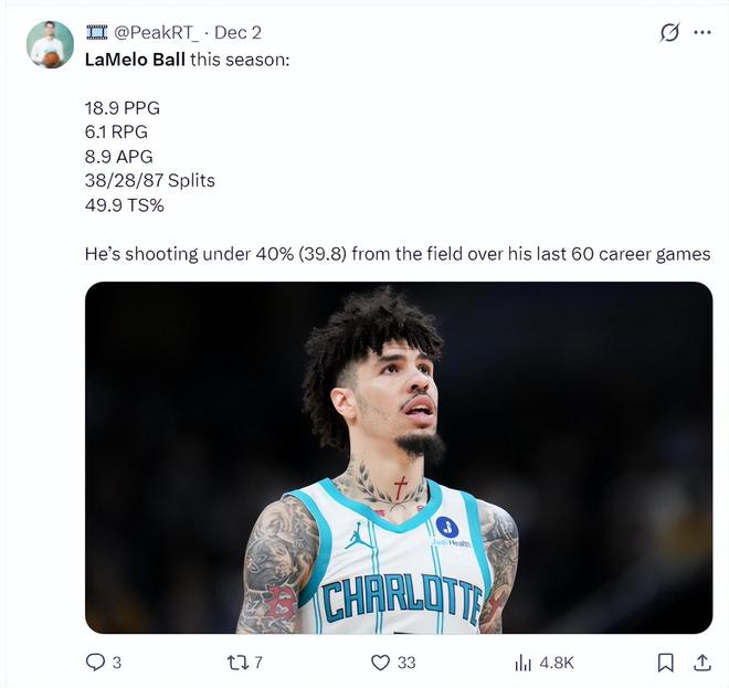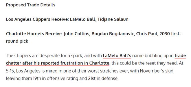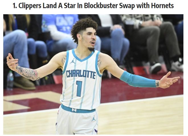 美媒FW分析了交易截止日前可能被交易的10个球星,黄蜂队的拉梅洛-鲍尔就是其中之一,他们认为快船可以跟黄蜂交易。